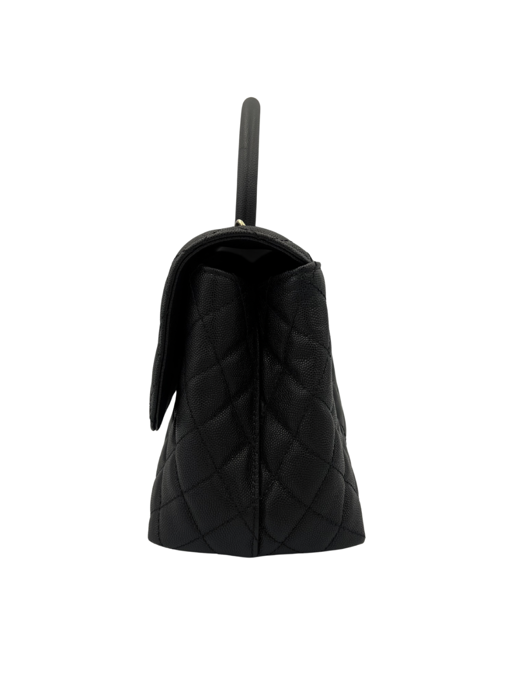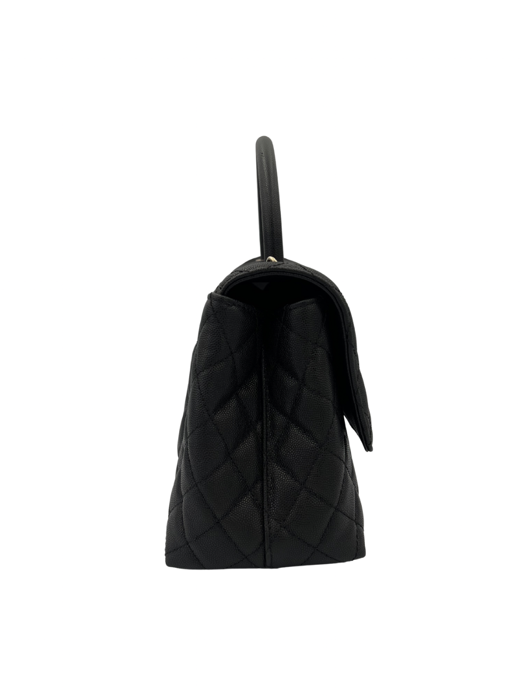 El Chanel Coco Handle Medium es un bolso elegante y sofisticado con diseño acolchado matelassé y el icónico logo CC metálico, que combina estilo clásico con un toque moderno. Con asa superior rígida y correa desmontable, ofrece versatilidad para llevarlo en mano, al hombro o cruzado con refinamiento. Su tamaño medio proporciona espacio funcional sin perder la estética lujosa y atemporal de Chanel.